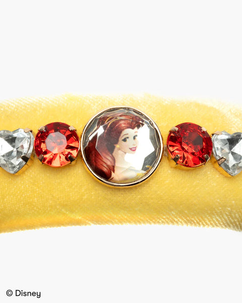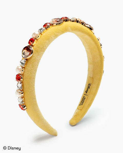 Embrace the beauty of Belle with our Disney Belle Headband! This luxe yellow velvet headband sparkles with red, crystal, and pearl gems, evoking the magic of Belle’s enchanted rose. Adorned with three beautiful Belle cameo gems, it’s the perfect accessory for Disney lovers of all ages. Whether you’re a bookworm or belle of the ball, this enchanting headband is here to crown your adventures in style!