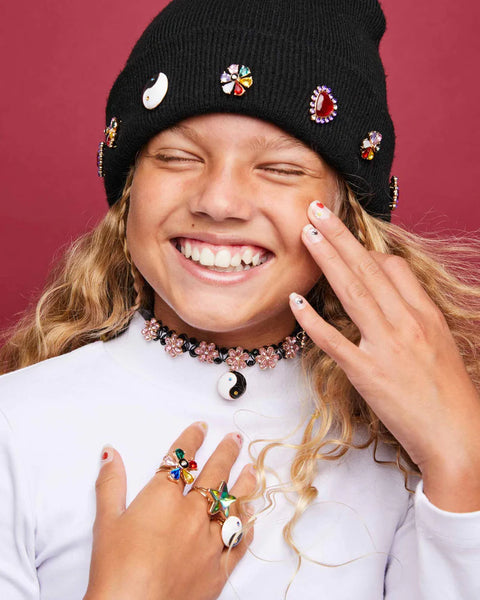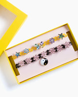 This set includes 2 (!!) comfortable and stretchy choker necklaces that feature convenient toggle clasps (no more good hair days ruined by having to push these over your head). Accented with colorful gems and charms, you can choose the look that matches your mood—sunny butterflies and sweet stars or the yin-yang and flower combo with a rock & roll feel.