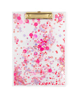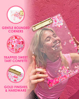 Ensure work is never boring thanks to this fun confetti acrylic clipboard! Packed with our Sweet Tart Confetti in a variety of pinks and featuring luxe gold hardware details, this is the ideal accessory for any student, nurse, teacher, or just to have handy and bring the fun!