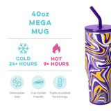 Hydrating has never been easier with our 40oz Insulated Mega Mug! A cup holder-friendly frame, a comfort-grip handle, and a plastic straw with a silicone flexi-tip all come together to create your new favorite Swig.