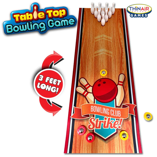Bring the excitement of the bowling alley to your home with the Thin Air Brands Tabletop Bowling Alley Game! This fun and engaging family board game is perfect for kids and adults alike, making it an ideal choice for family game nights, birthday parties, or as a thoughtful holiday gift.