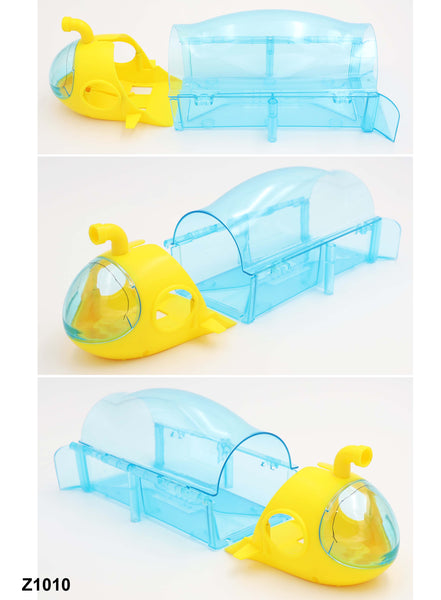 Hey there, underwater explorers! Gear up for an epic journey with the ZhuZhu Aquarium Submarine and Dock Set. Remember, you bring the fish – this bright yellow submarine is powered by your favorite ZhuZhu Fish. Imagine the giggles as your ZhuZhu Fish "dives" into the driver's seat of this land-roaming submarine. No water? No problem! This submarine adventure is all about fun on dry land.